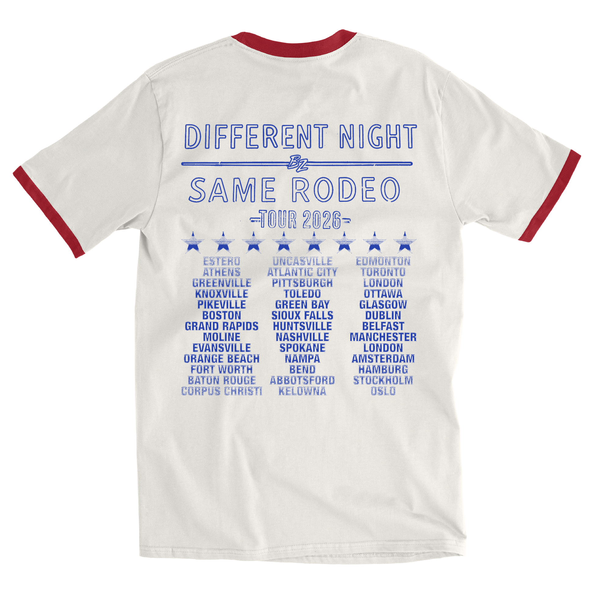BZ DNSR 2026 Tour Vintage White/Red Ringer Tee