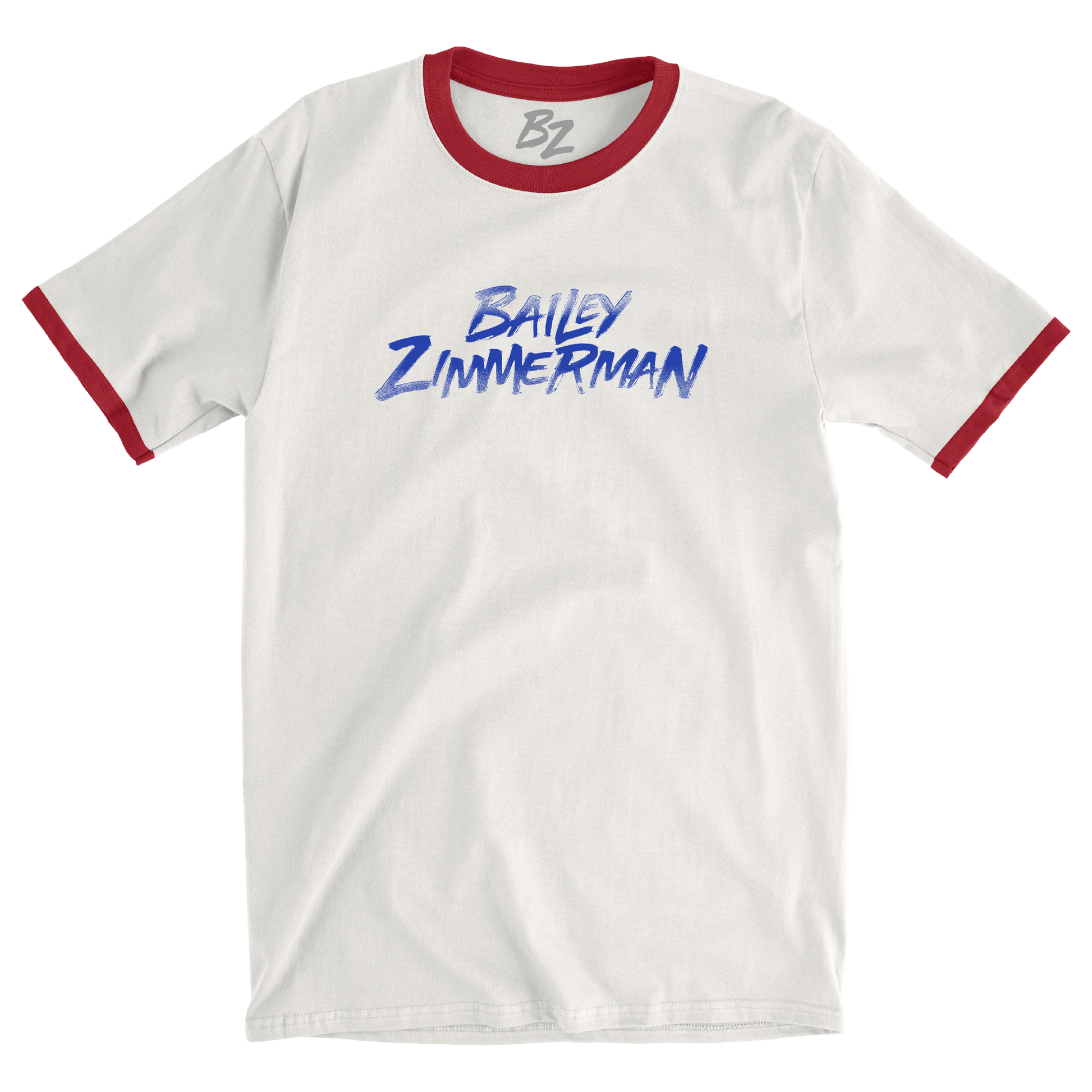 Unisex vintage white with red trim ringer tee featuring the Bailey Zimmerman logo on the front and DNSR 2026 tour routing on the back.