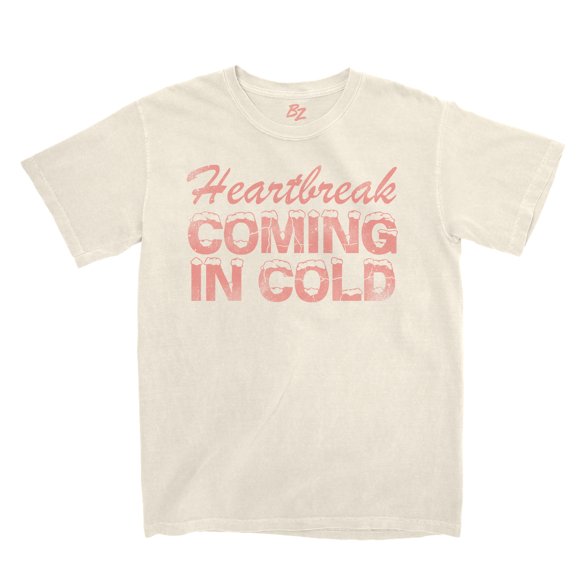 Unisex ivory tee featuring Heartbreak Coming In Cold graphic on the front and Bailey Zimmerman logo on the back.