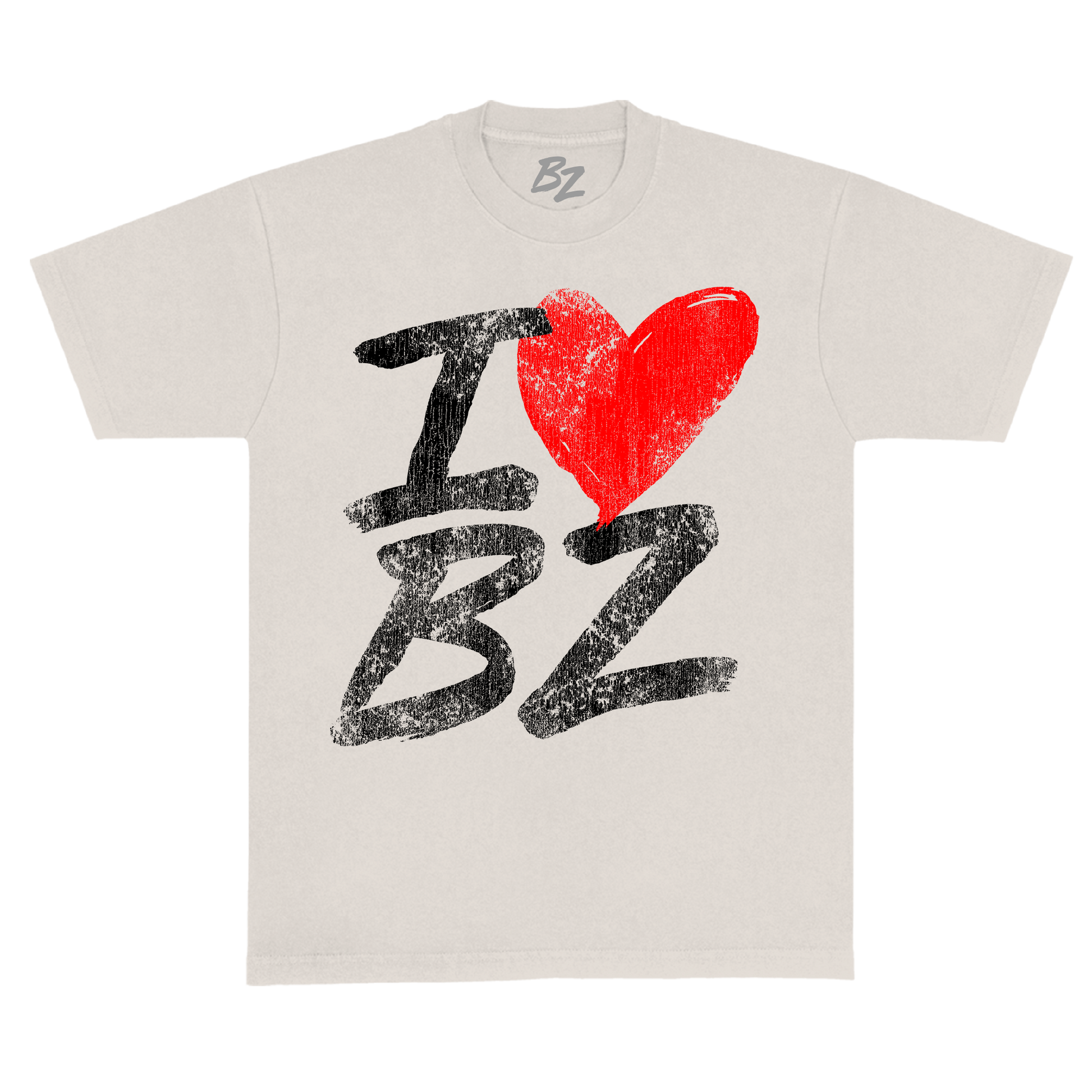 Unisex ivory tee featuring I ❤️ BZ graphic. Oversized fit.